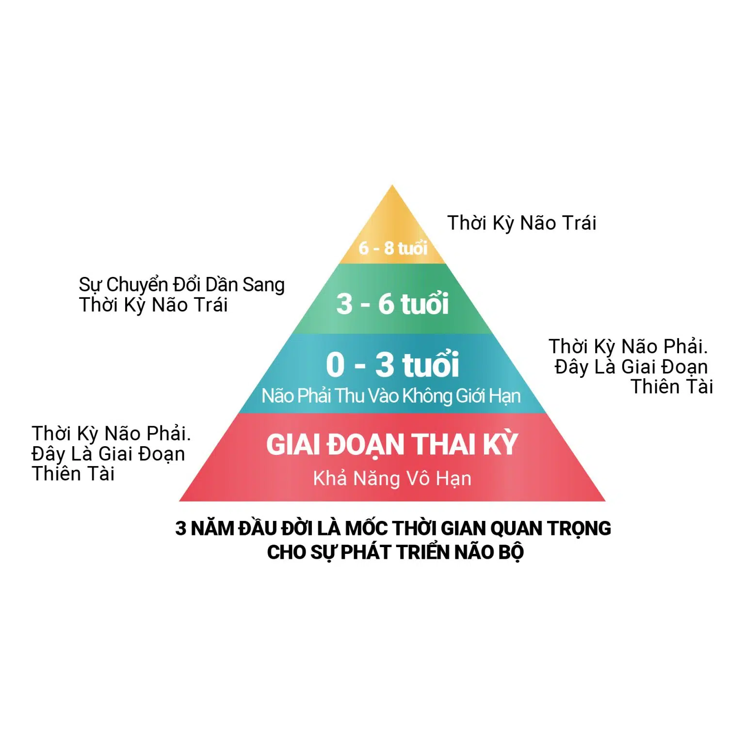 Khoa học não bộ đã chứng minh rằng giai đoạn 0–6 tuổi là thời kỳ vàng để phát triển trí tuệ. Trong giai đoạn này, não bộ trẻ có khả năng hấp thụ và xử lý thông tin với tốc độ đáng kinh ngạc.