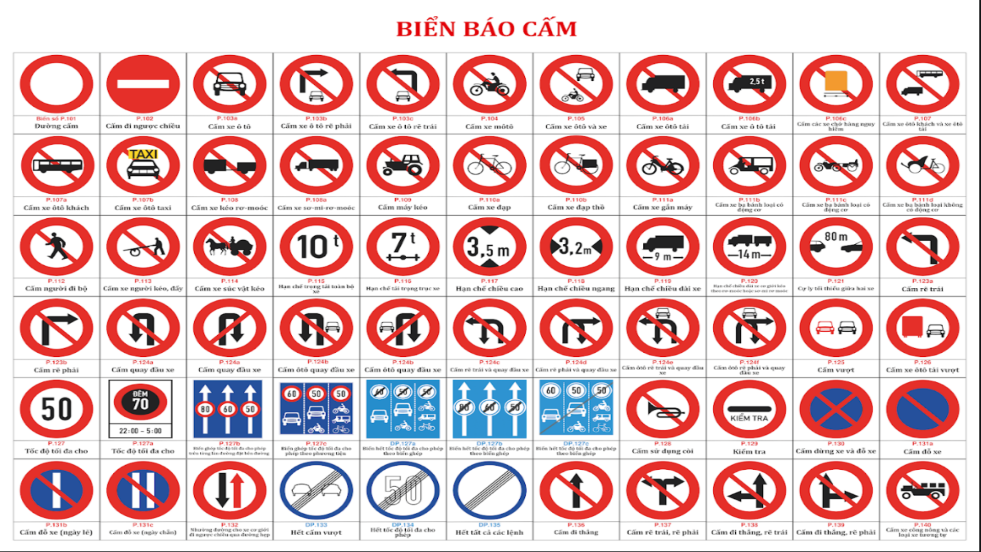 Hình ảnh rõ nét, phân nhóm theo từng loại biển giúp người xem nhận diện nhanh và hiểu đúng ý nghĩa.